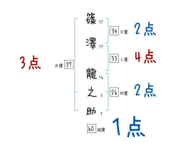 篠澤龍之助さんの画数の鑑定結果