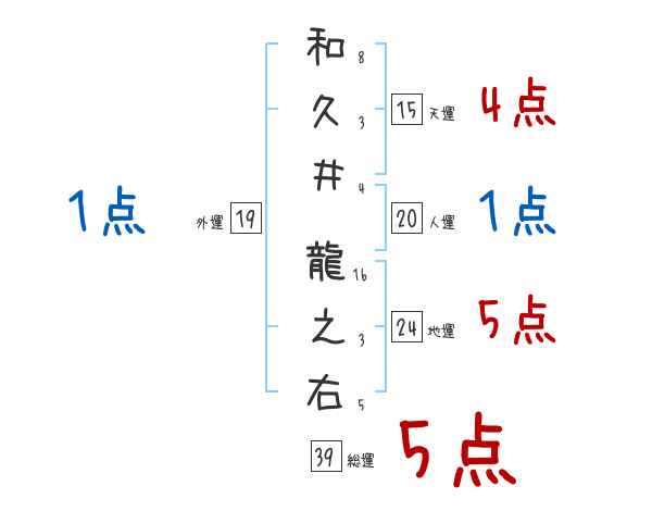 和久井龍之右さんの画数の鑑定結果