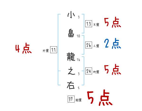 小畠龍之右さんの画数の鑑定結果