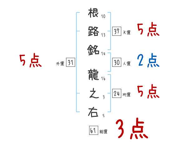 根路銘龍之右さんの画数の鑑定結果