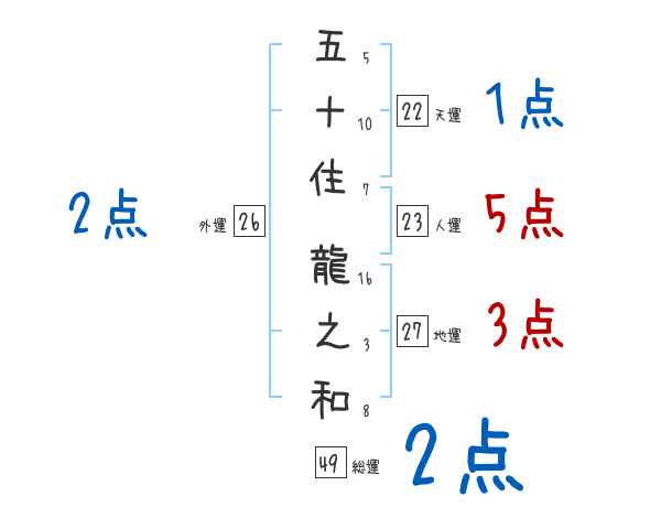 五十住龍之和さんの画数の鑑定結果