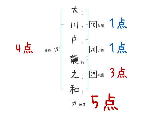 天運![]() | 大川戸龍之和さんの天運は10画の1つ星!不安を感じやすい傾向。ストレスを抱えないように注意しましょう。 家系が持つ宿命的な運勢を表します。祖先から受け継いだ苗字ですので自分の力が及びません。家柄を象徴します。 |