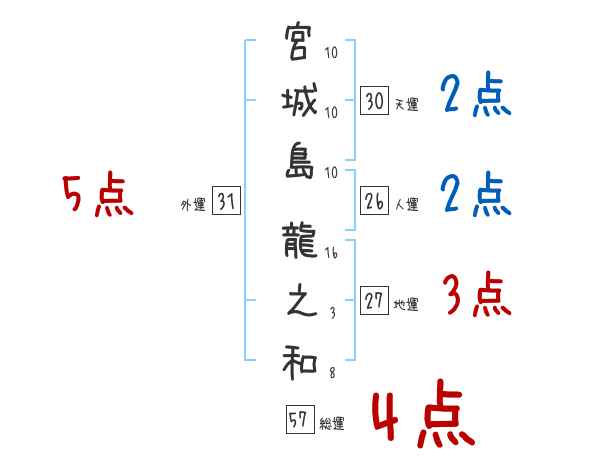 宮城島龍之和さんの画数の鑑定結果