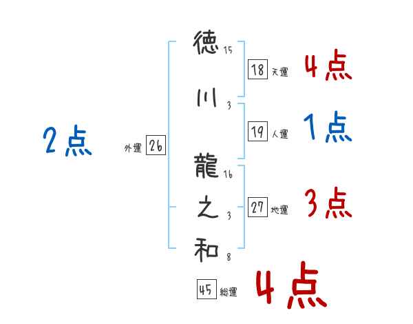 徳川龍之和さんの画数の鑑定結果