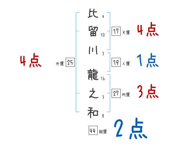 比留川龍之和さんの画数の鑑定結果