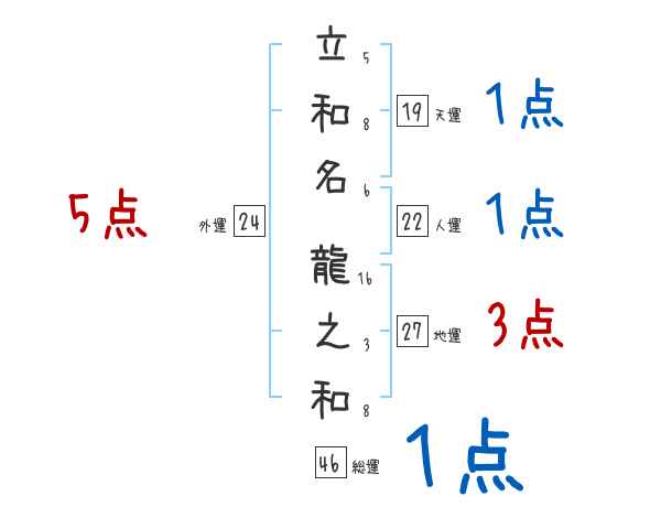 立和名龍之和さんの画数の鑑定結果