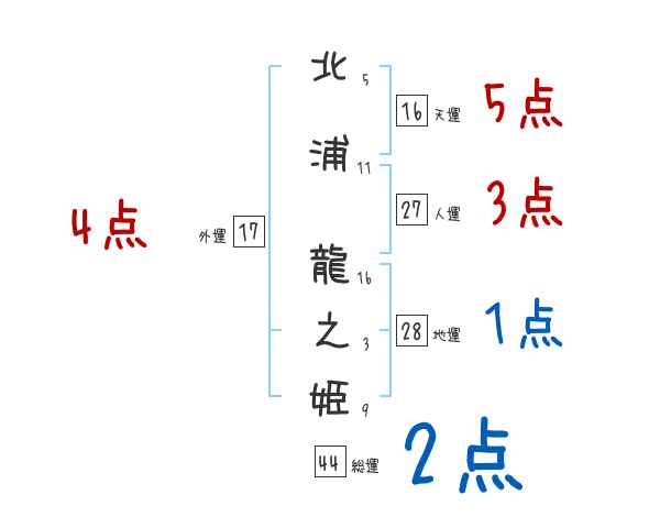 天運![]() | 北浦龍之姫さんの天運は16画の5つ星!人望が厚く大きく発展する。逆転成功が見える。 家系が持つ宿命的な運勢を表します。祖先から受け継いだ苗字ですので自分の力が及びません。家柄を象徴します。 |