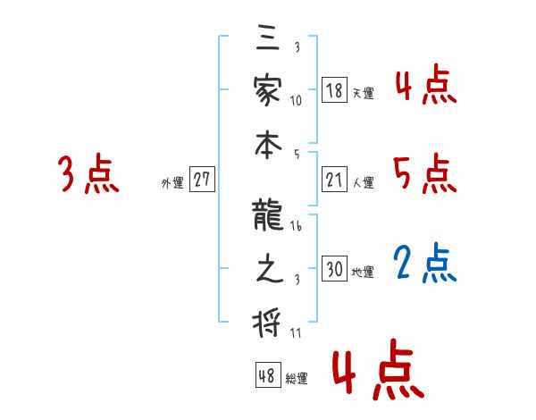 三家本龍之将さんの総運は48画の4つ星