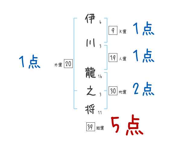 伊川龍之将さんの画数の鑑定結果