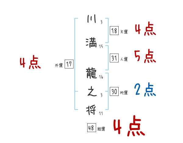 総運![]() | 川満龍之将さんの総運は48画の4つ星!賢明な性格で人望が厚い。指導力があり多くの人に尊敬される。 あなたの人生を表す1番重要な運勢です。生涯を通じて影響する総合運となり、主に50歳以降の晩年期に影響を及ぼします。 |