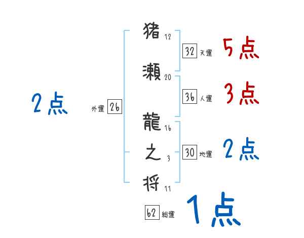 猪瀬龍之将さんの画数の鑑定結果