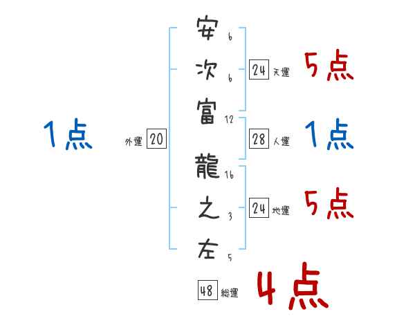 他にも占いサイトは数多くありますが、占い師や流派によって、字画の数え方運勢の吉凶が異なり、当サイトで運勢が良くなくても、他のサイトで良い運勢が出ることがあります。