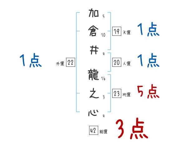 加倉井龍之心さんの画数の鑑定結果