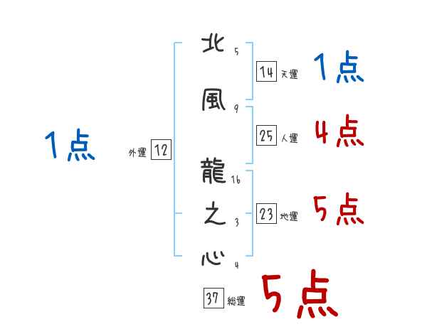 地運![]() | 北風龍之心さんの地運は23画の5つ星!想像力に優れ活力がある。一代で成功し名誉を手に入れる。 個性を表す基礎的な運勢です。性格形成や対人関係、行動力など家庭環境に影響されます。主に誕生してから20歳くらいまでの若年期の運勢を表します。 |