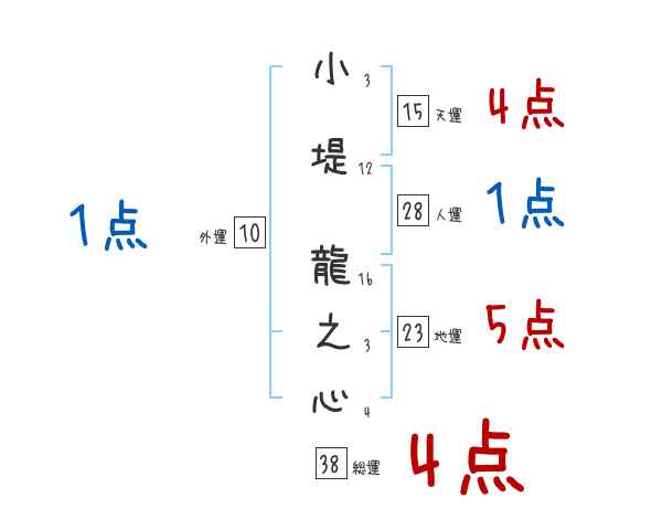 天運![]() | 小堤龍之心さんの天運は15画の4つ星!人徳があり出世する。順調に物事を進め円満な人生。 家系が持つ宿命的な運勢を表します。祖先から受け継いだ苗字ですので自分の力が及びません。家柄を象徴します。 |
