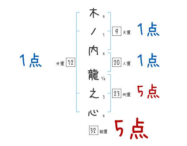 天運![]() | 木ノ内龍之心さんの天運は9画の1つ星!消極的で才能を発揮することが苦手なことも。周りの意見に耳を傾けましょう。 家系が持つ宿命的な運勢を表します。祖先から受け継いだ苗字ですので自分の力が及びません。家柄を象徴します。 |