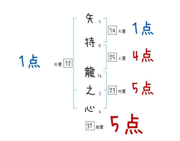 地運![]() | 矢持龍之心さんの地運は23画の5つ星!想像力に優れ活力がある。一代で成功し名誉を手に入れる。 個性を表す基礎的な運勢です。性格形成や対人関係、行動力など家庭環境に影響されます。主に誕生してから20歳くらいまでの若年期の運勢を表します。 |