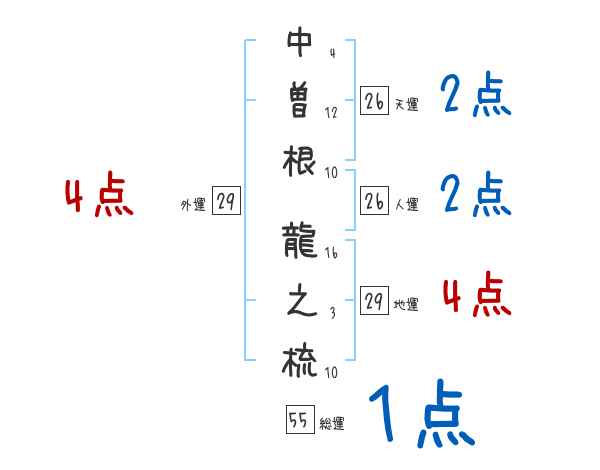 家系が持つ宿命的な運勢を表します。祖先から受け継いだ苗字ですので自分の力が及びません。家柄を象徴します。