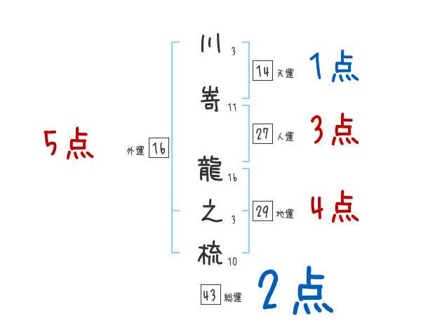 川嵜龍之梳さんの画数の鑑定結果