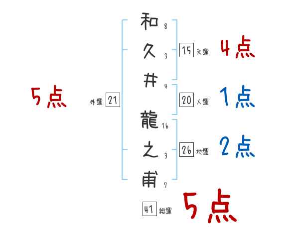 和久井龍之甫さんの画数の鑑定結果