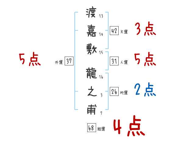 渡嘉敷龍之甫さんの画数の鑑定結果