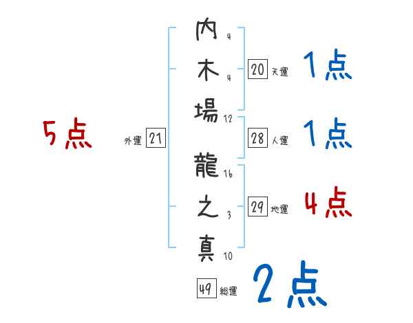 内木場龍之真さんの画数の鑑定結果