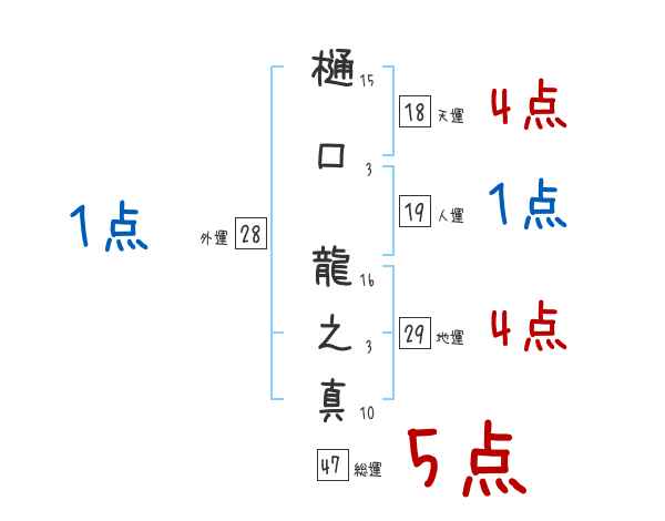 樋口龍之真さんの画数の鑑定結果