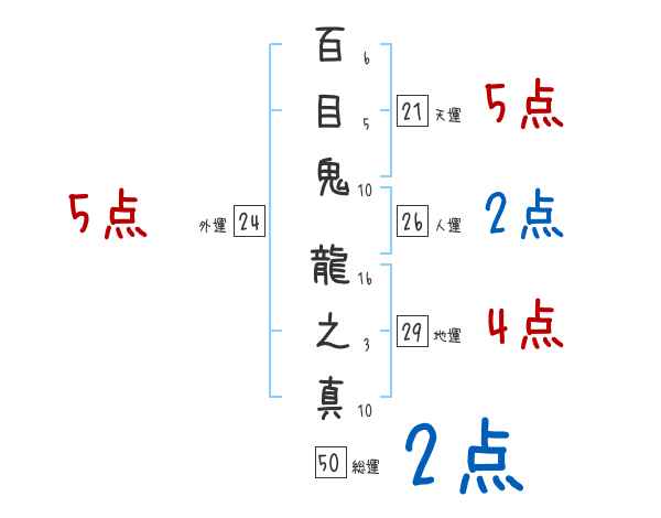 百目鬼龍之真さんの画数の鑑定結果