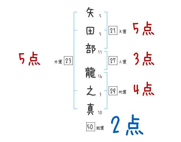 矢田部龍之真さんの画数の鑑定結果