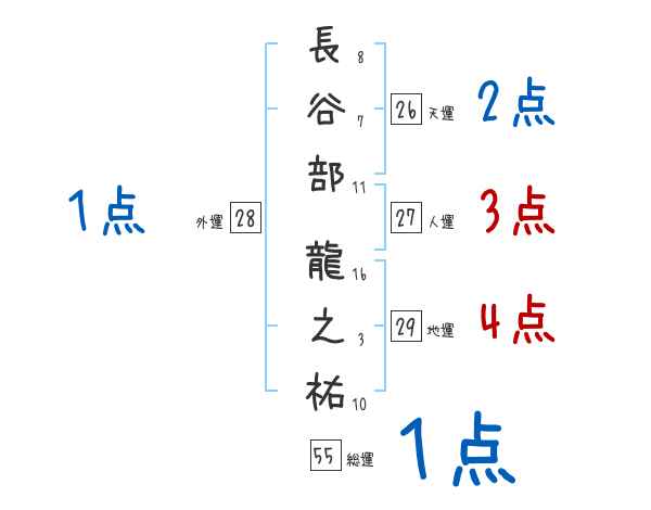 長谷部龍之祐さんの画数の鑑定結果
