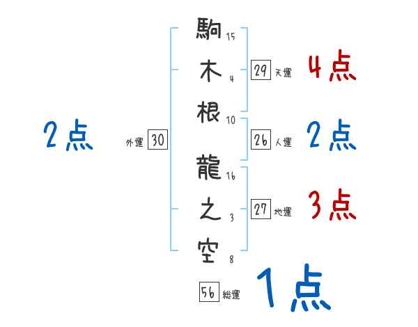 駒木根龍之空さんの画数の鑑定結果