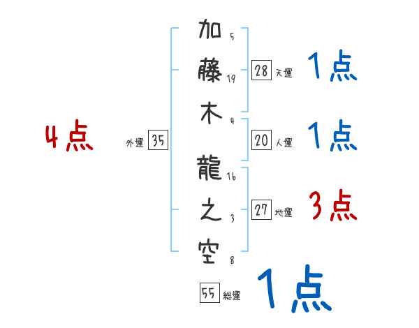 加藤木龍之空さんの画数の鑑定結果