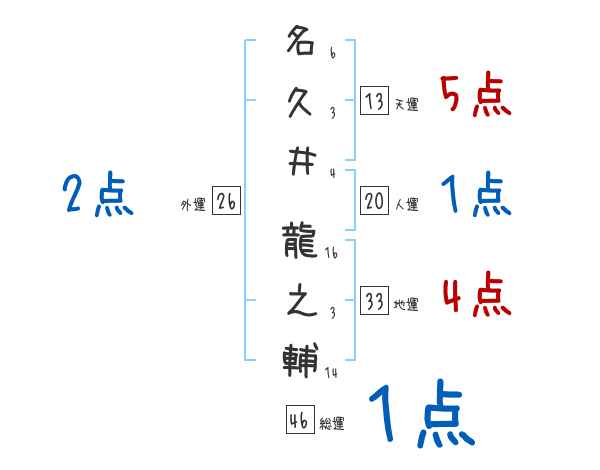 天運![]() | 名久井龍之輔さんの天運は13画の5つ星!才能に恵まれ人気がある。名声を手に入れる。円満な人生。 家系が持つ宿命的な運勢を表します。祖先から受け継いだ苗字ですので自分の力が及びません。家柄を象徴します。 |