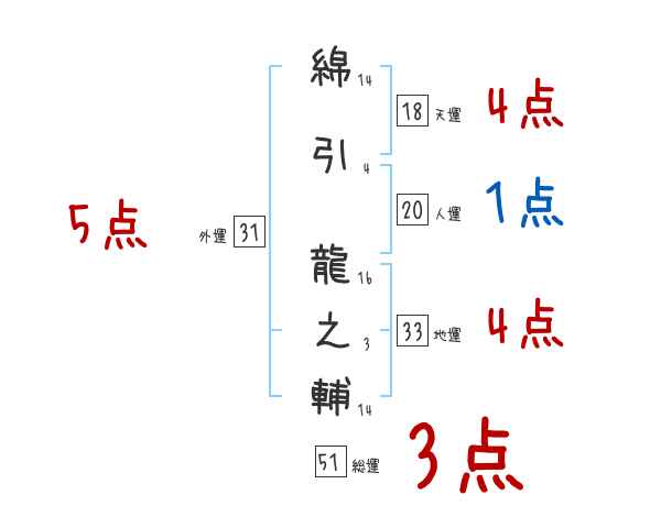 綿引龍之輔さんの画数の鑑定結果