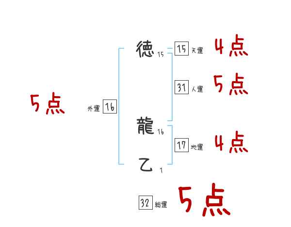 徳龍乙さんの画数の鑑定結果