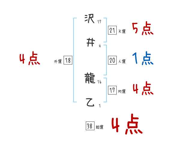 沢井龍乙さんの画数の鑑定結果
