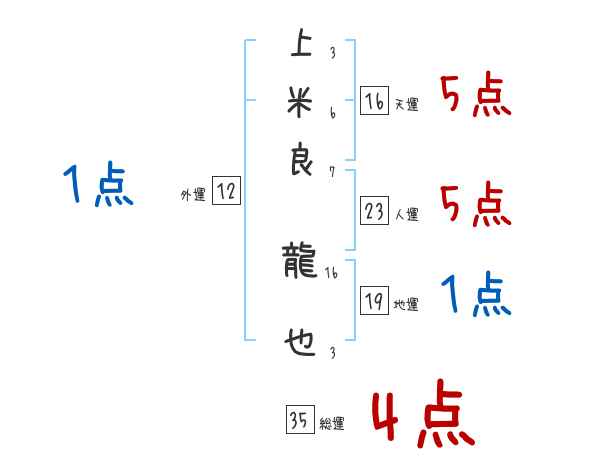 上米良龍也さんの画数の鑑定結果