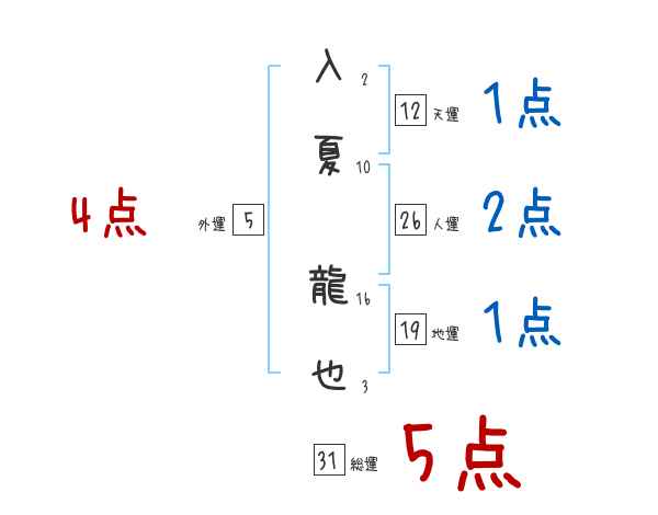 入夏龍也さんの画数の鑑定結果