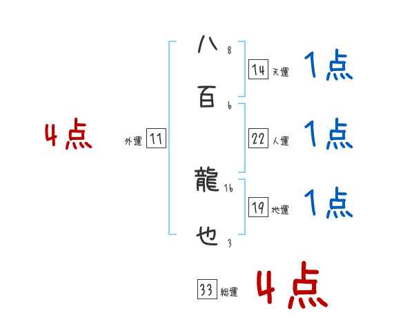 八百龍也さんの画数の鑑定結果