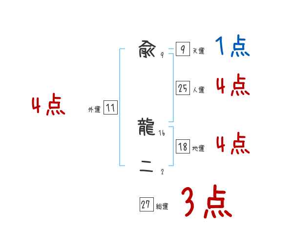 兪龍二さんの画数の鑑定結果