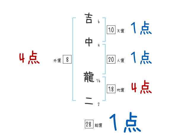 吉中龍二さんの画数の鑑定結果