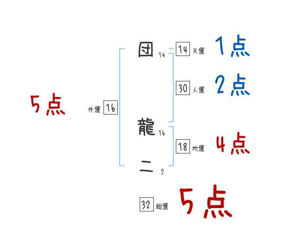 団龍二さんの画数の鑑定結果