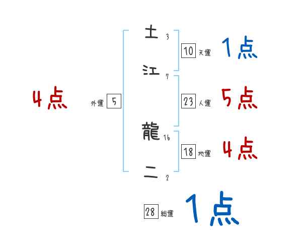 土江龍二さんの画数の鑑定結果