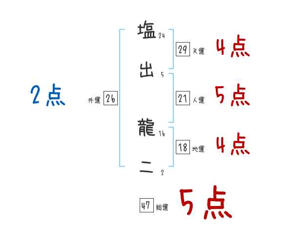 塩出龍二さんの画数の鑑定結果