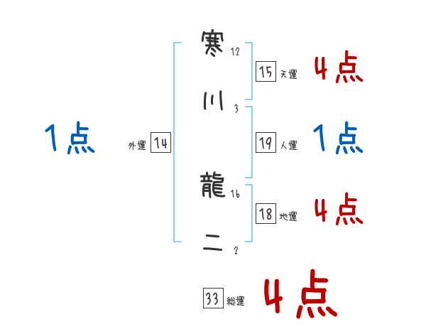 寒川龍二さんの画数の鑑定結果