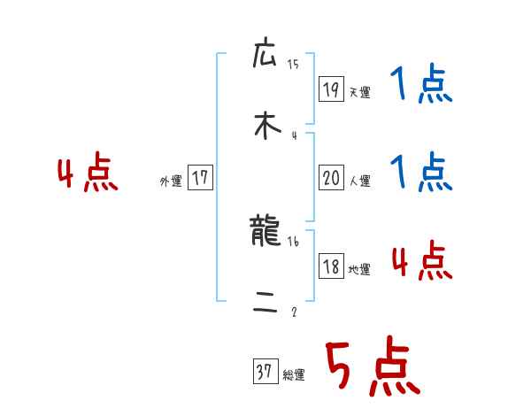 広木龍二さんの画数の鑑定結果