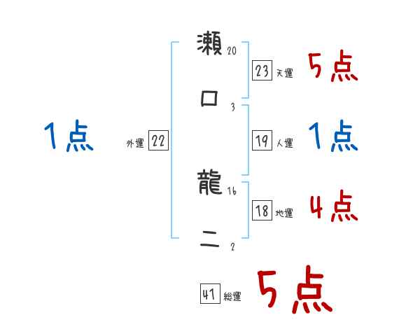 瀬口龍二さんの画数の鑑定結果