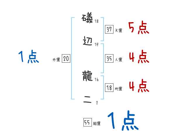 礒辺龍二さんの画数の鑑定結果