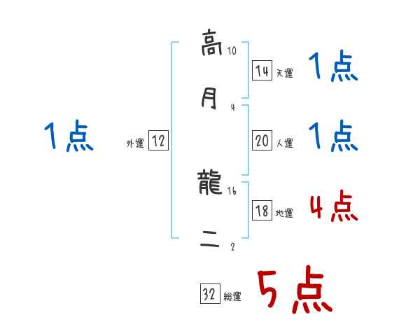 高月龍二さんの画数の鑑定結果