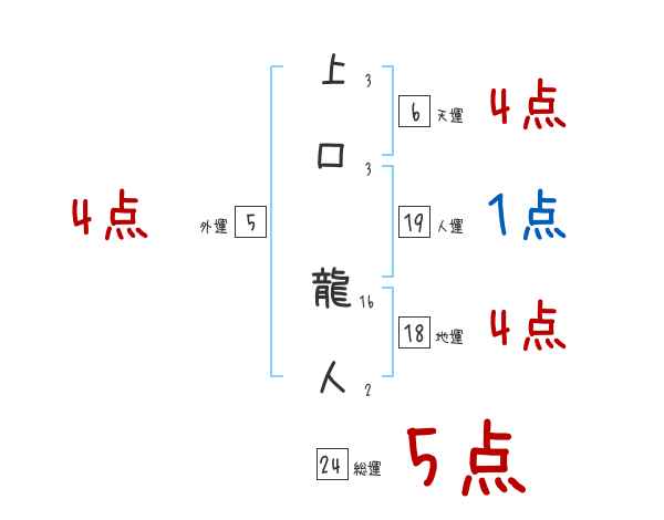 外運![]() | 上口龍人さんの外運は5画の4つ星!健康で安泰。協調性に優れ、財産に恵まれる。 生活面を象徴する運勢です。外部から受ける影響力を表し、結婚運、家庭運や職場、環境への順応性を表します。 |